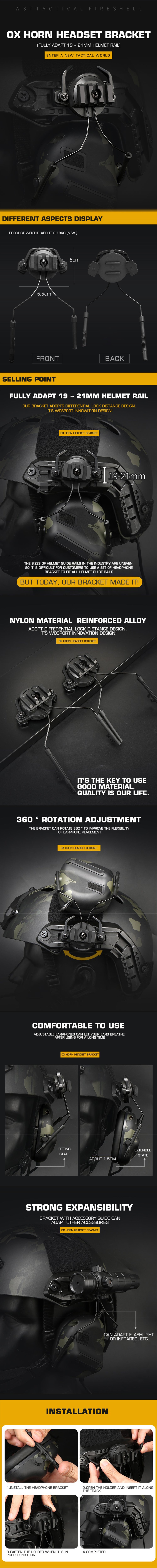 Название продукта:Кронштейн для гарнитуры из бычьего рога (полностью адаптируется к направляющей шлема 19 ~ 21 мм)